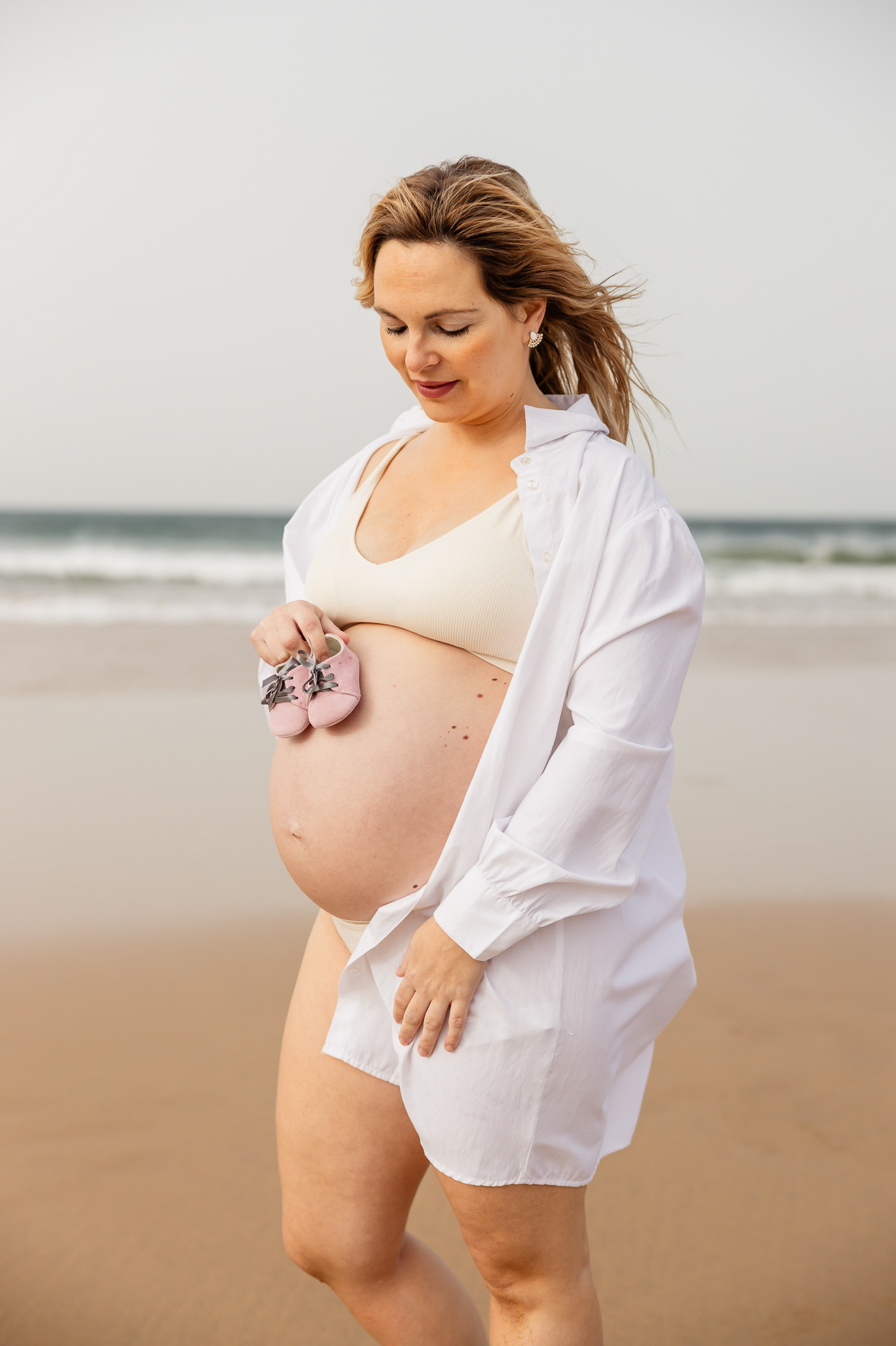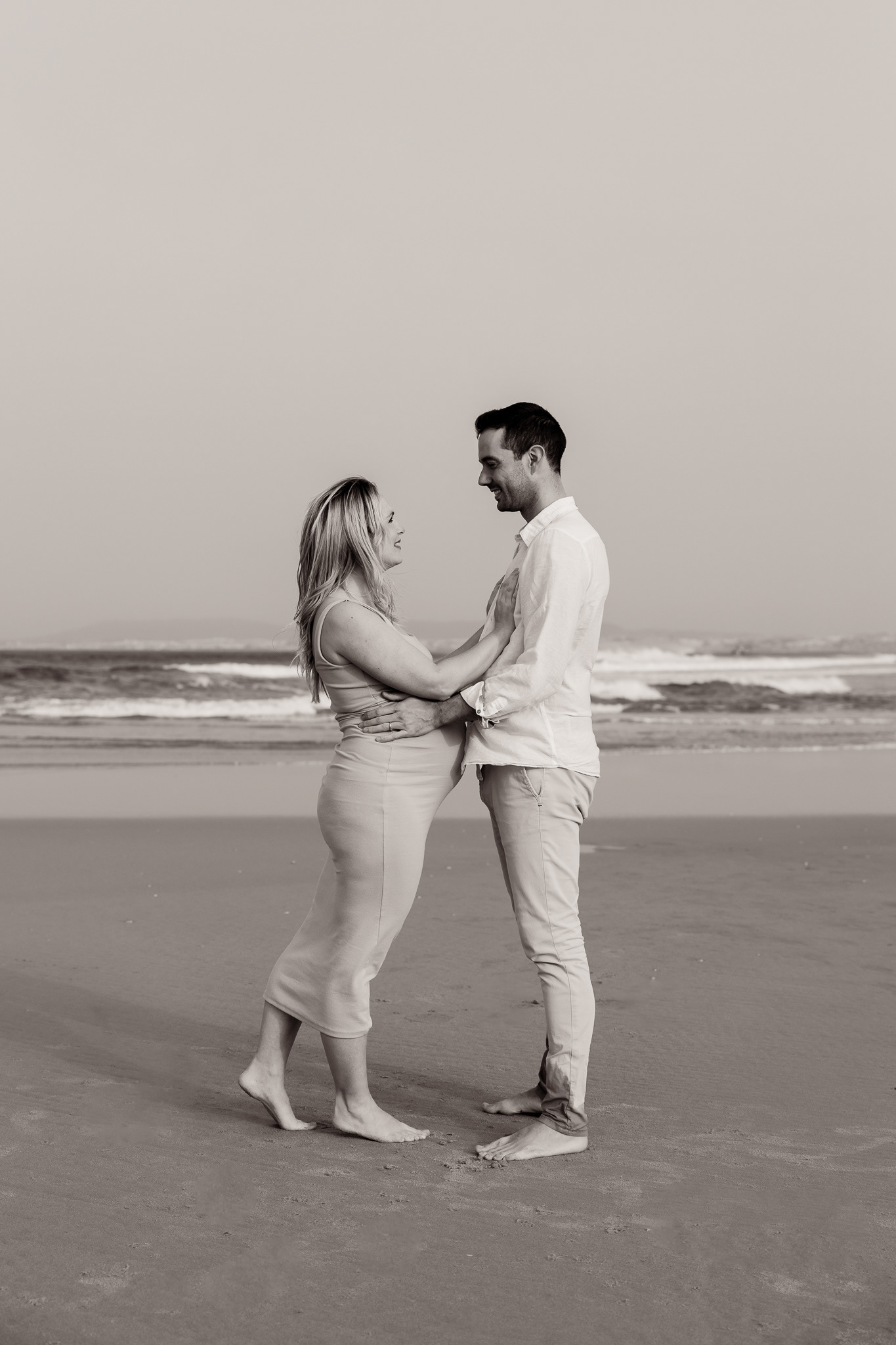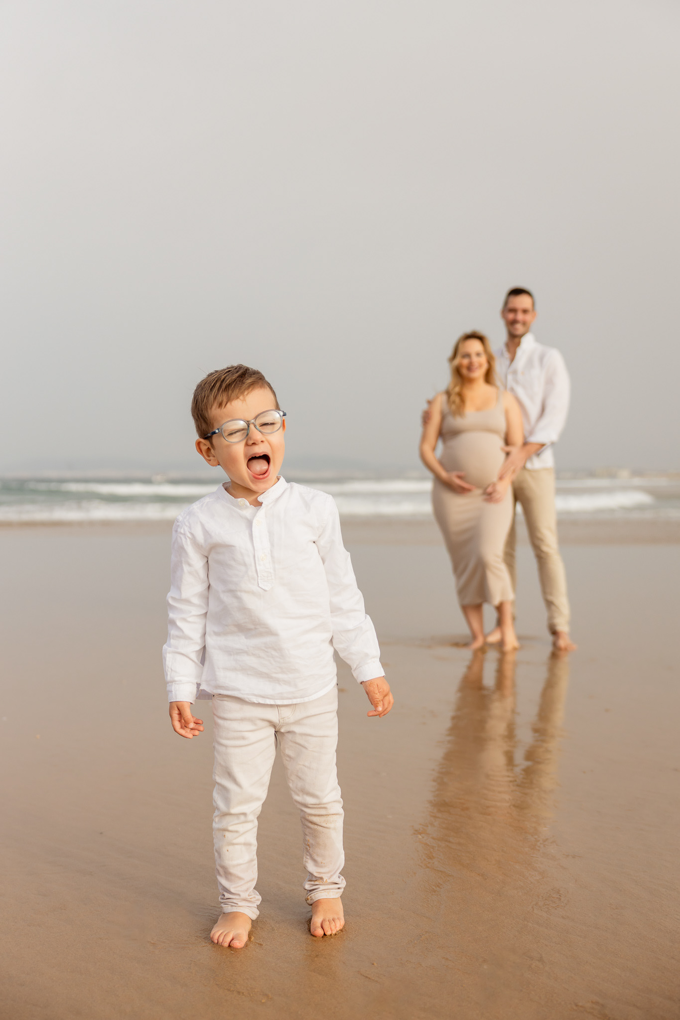 Ao nascer do Sol, com os pé sobre a areia, uma sessão carregadinha de amor...
